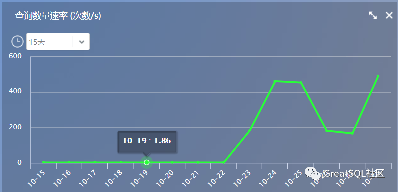 通过监控查看现在主库MySQL(支撑业务)的监控指标,看一天的、十五天的 (以每秒查询数量速率为例)