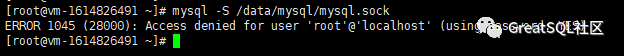 mysql -S /data/mysql/mysql.sock -- 无法登陆返回报错