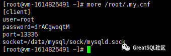 通过日志文件 strace_socket.log 中提示的信息,在服务器上面确实找到了文件/root/.my.cnf,其内容如下,而内容中的 user 和 password 正是 strace 日志中获取到的内容