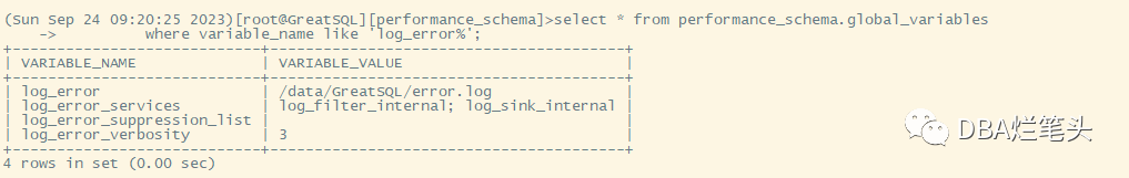 show global variables like 'log_error_sup%';