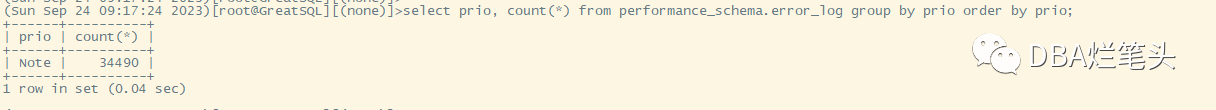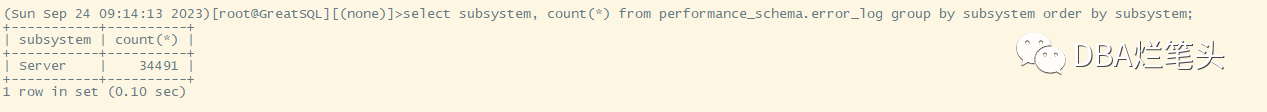 select * from (select * from performance_schema.error_log order by logged desc limit 10) a order by logged\G获得错误日志中条目的一些统计信息: