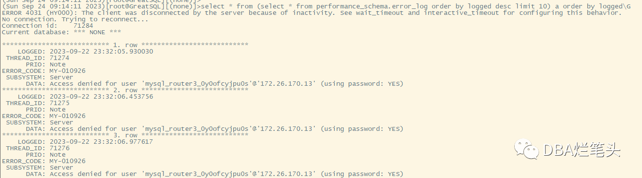 当无权访问OS错误日志文件时,可以在性能模式中查看错误日志内容并且使用SQL更容易解析。